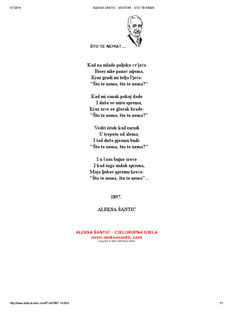 Aleksa Santic Mostar Sto Te Nema