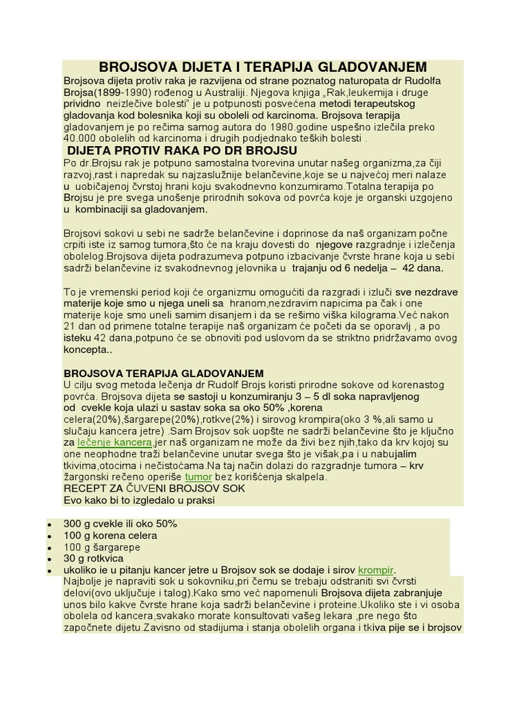 Brojsova Dijeta Najbolja Terapija Protiv Raka Cajevi