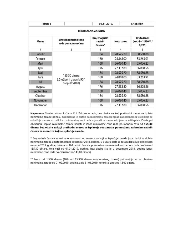 Tabela 6 25 12 2017 Savetnik Minimalna Zarada Broj 6l Pdf