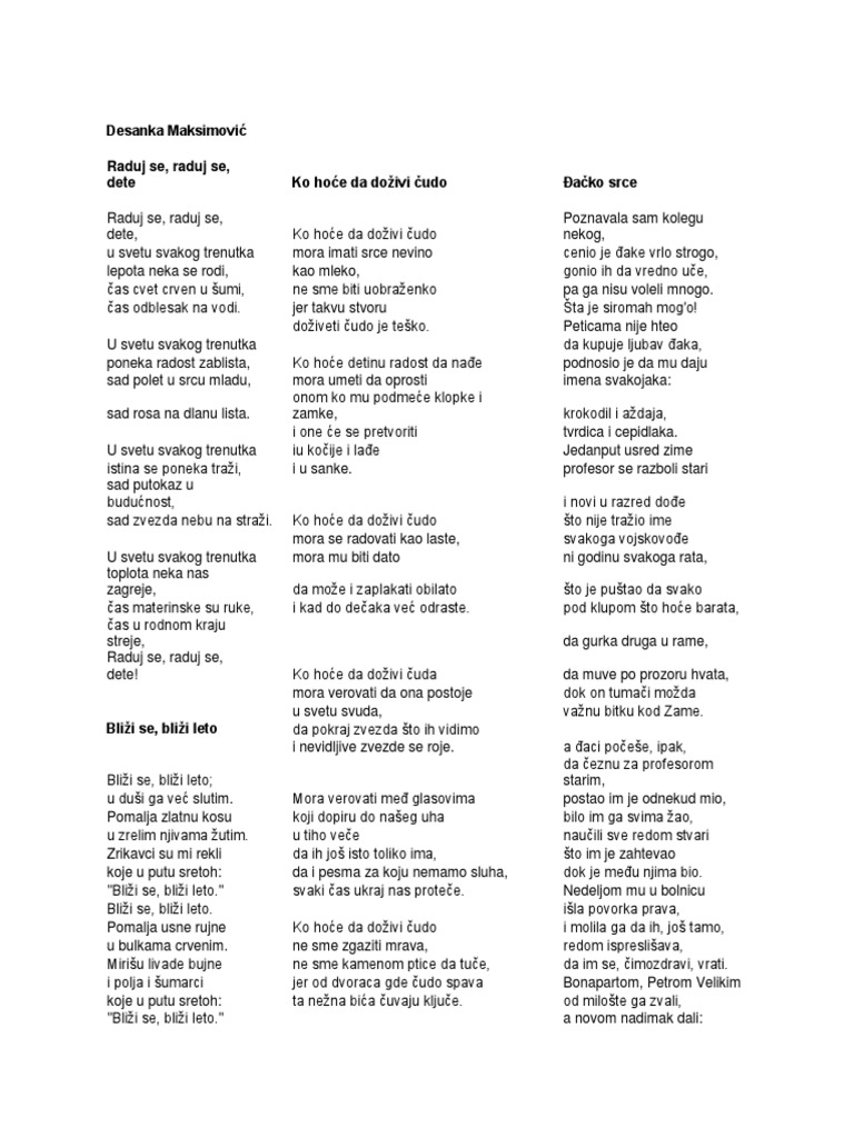 Pesmarica Pesma Za Mene Pesma Za Tebe Desanka Maksimovic