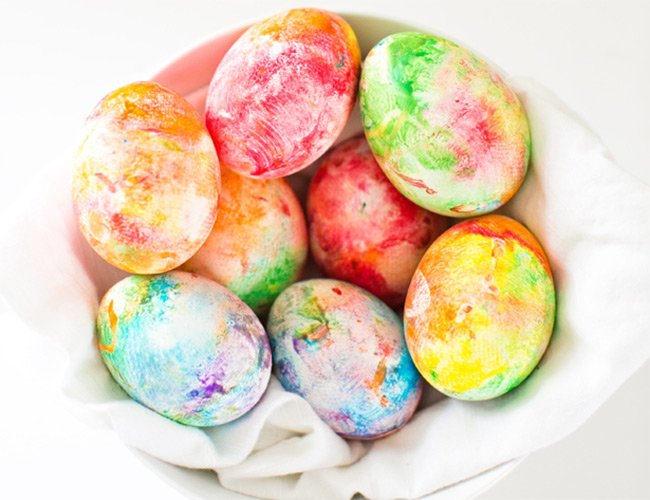 S druge strane jednobojna uskršnja jaja su totalno monotona i zato je internet poludeo za trikom sa penom za brijanje pomoću kog možete da dobijete jaja u svim bojama duge. Standardno farbanje jaja ume da bude prilično zahtevno i dosadno a da ne pričamo o mogućnosti da vam sva jaja popucaju prilikom farbanja u vreloj vodi. Stavite penu za brijanje u posudu najbolje u pleh i potpuno je razmažite da dobijete ravan sloj. Preko pene sipajte boju za farbanje jaja ali tako da napravite tufne jednu blizu druge pa čačkalicom povežite tufne i dobićete zanimljivu šaru.