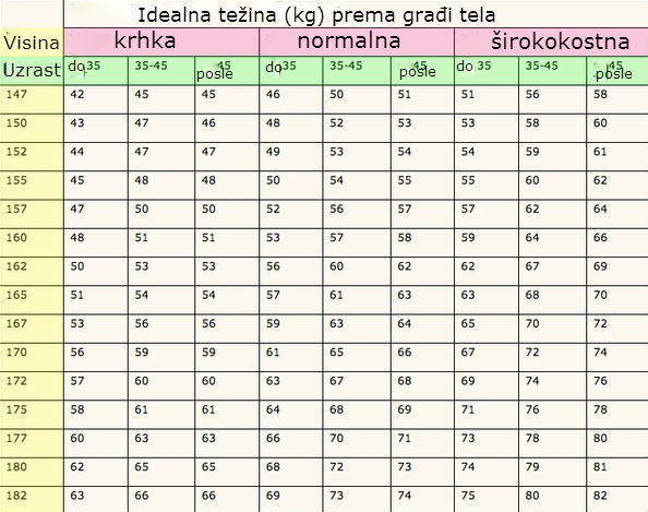 Idealna Tezina Za Visinu Najbolja Tabela Idealna Tezina