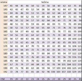 Profesionalna Tabela Odnosa Visine I Tezine Za Zene I Muskarce