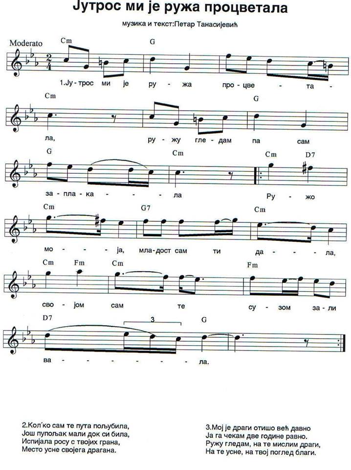 Note Domace I Strane Jutros Mi Je Ruza Procvetala Note Akordi Tekst
