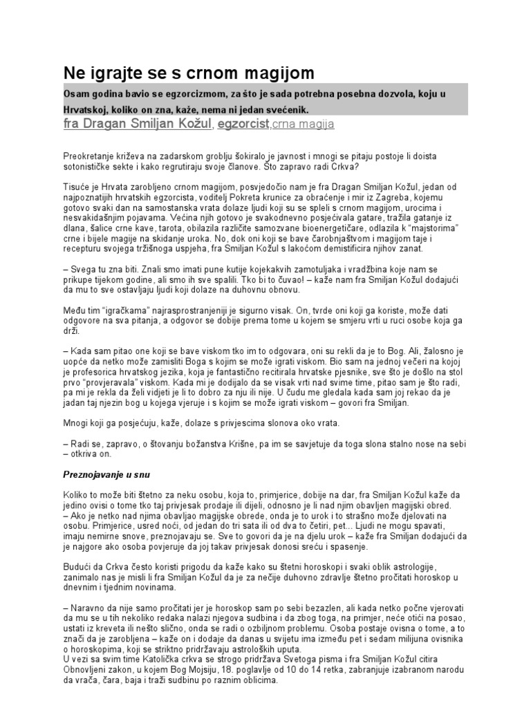 Ne Igrajte Se S Crnom Magijom Fra Dragan Smiljan Kozul Snagom Duha