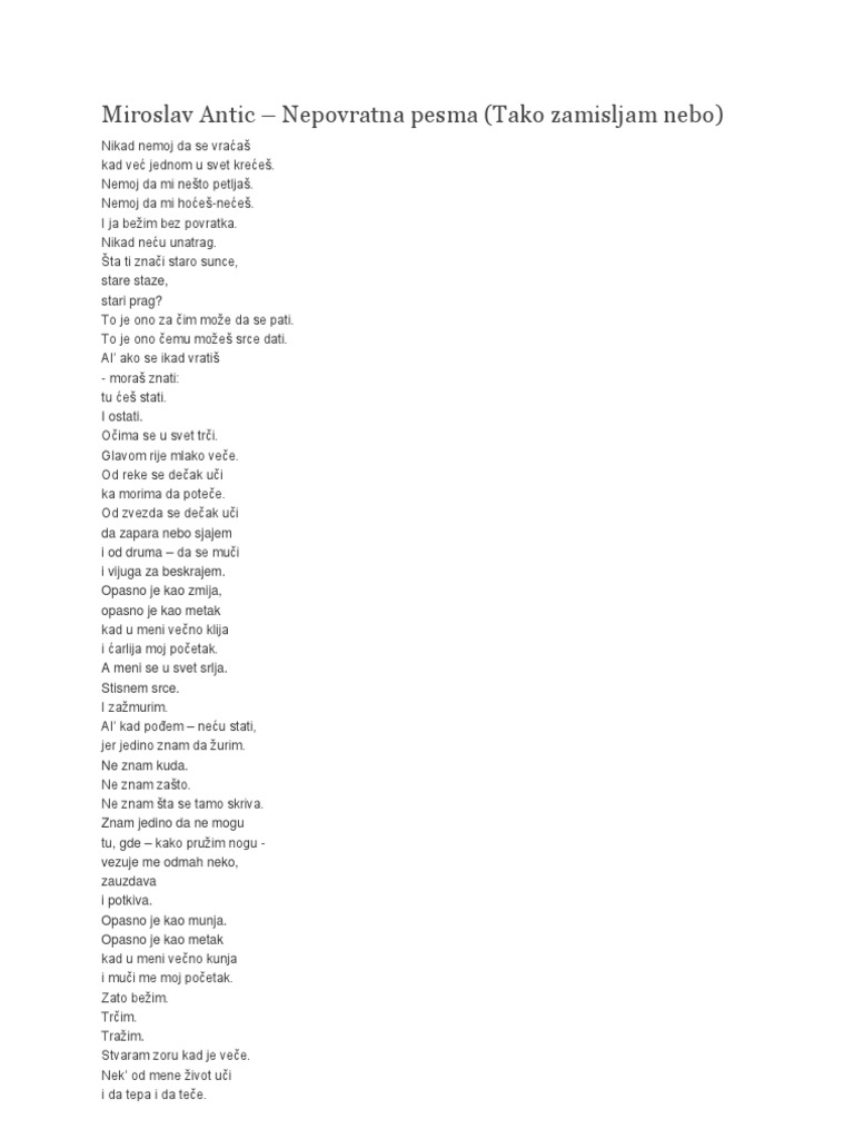 Miroslav Mika Antic Besmrtna Pesma Docx