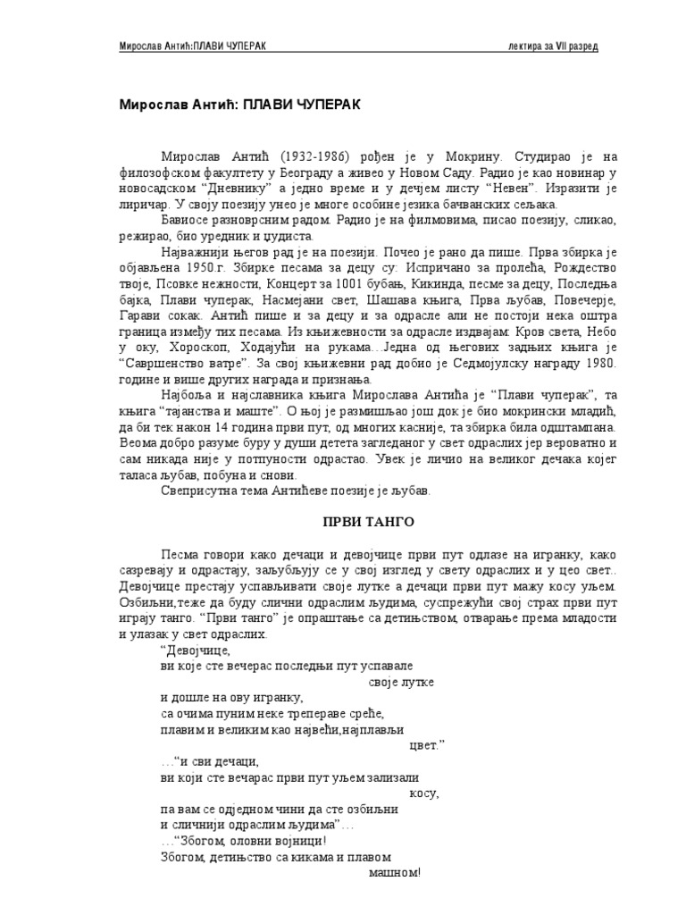 Prepricana Lektira Plavi Cuperak Miroslav Mika Antic