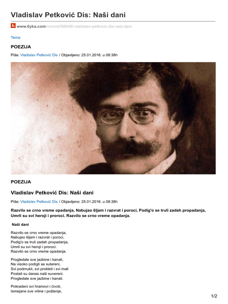 Nasi Dani Vladislav Petkovic Dis Jedinstven Testament Srpskog