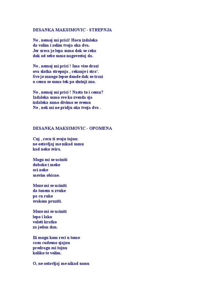 Strepnja Desanka Maksimovic Samo Lepa Secanja