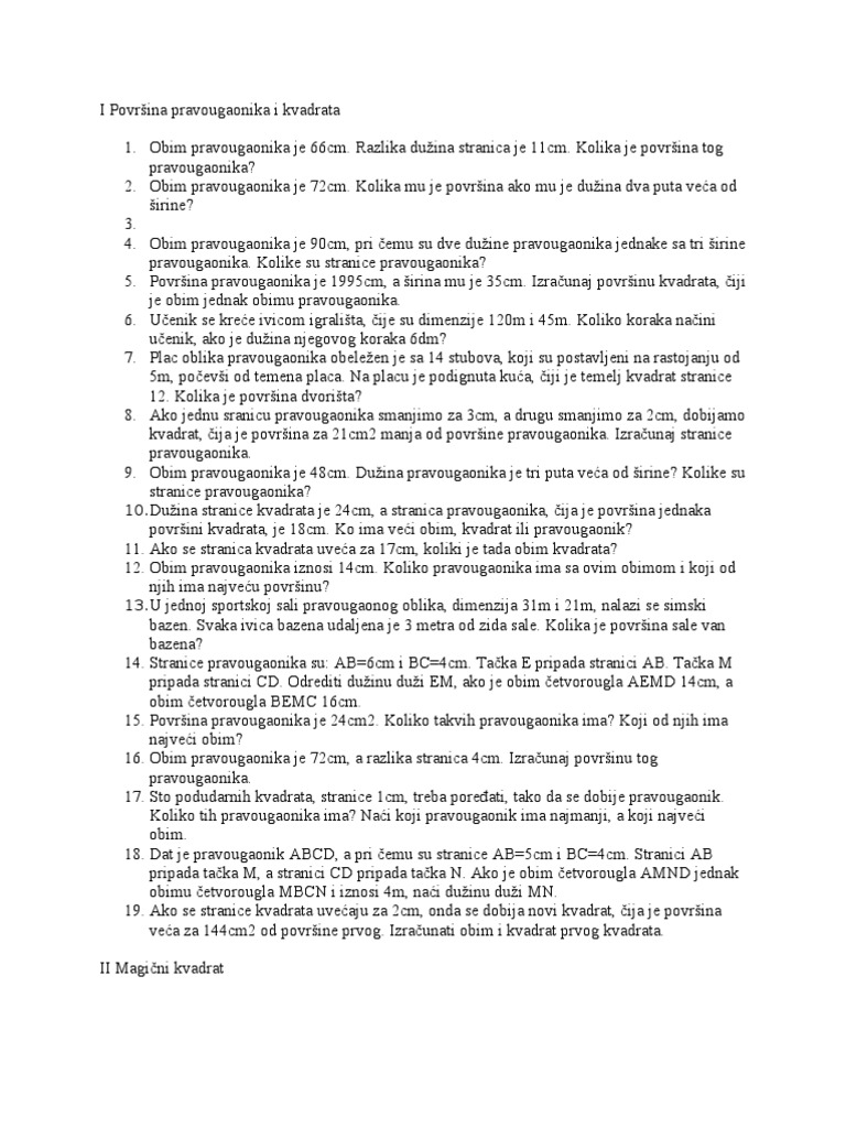 Pravougaonik I Kvadrat Zadaci