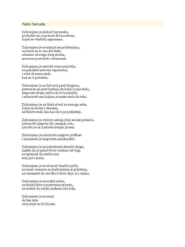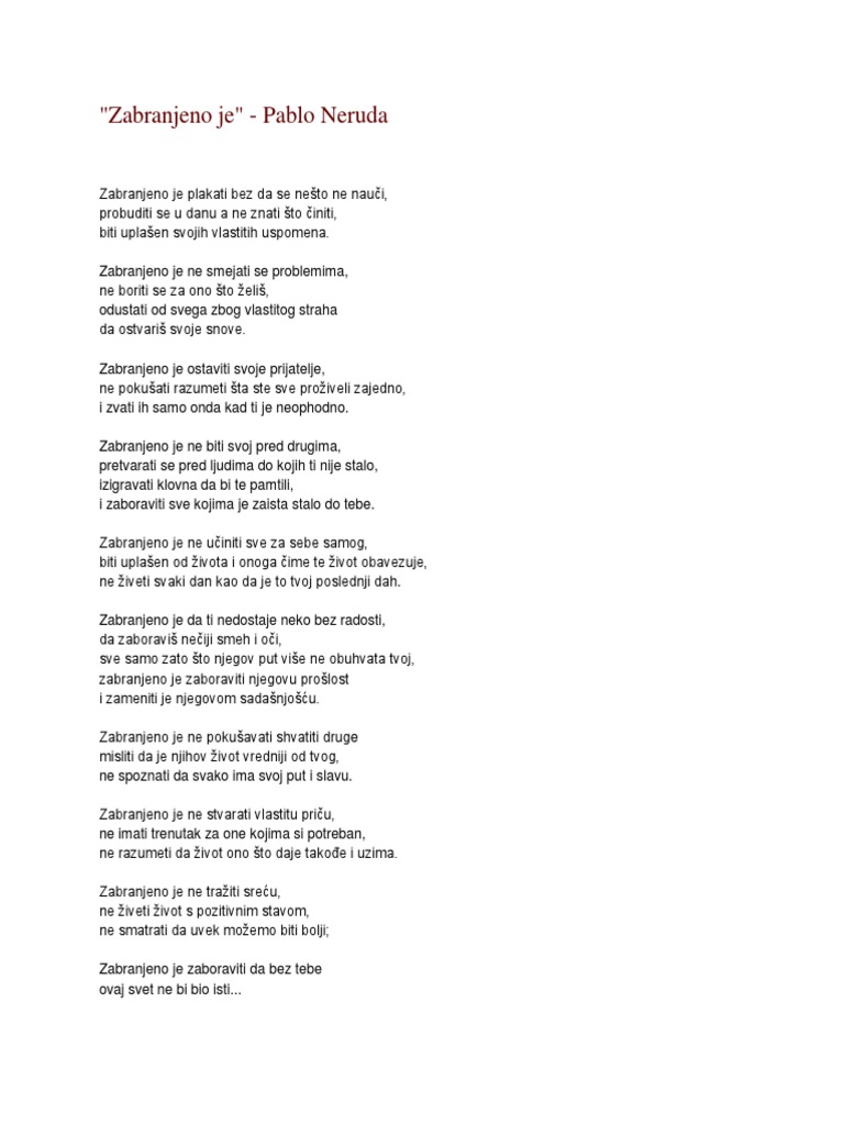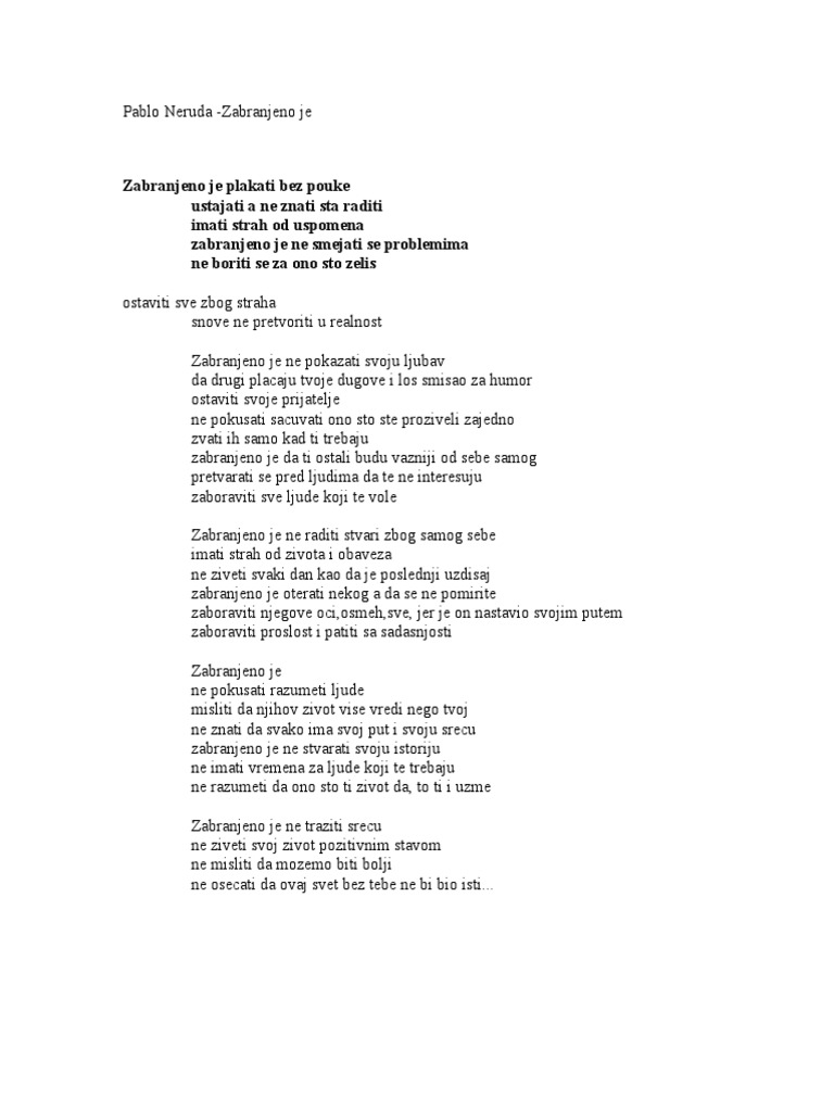 Pablo Neruda Zabranjeno Je