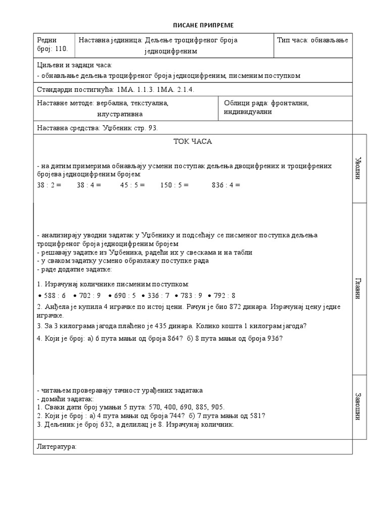 Pismeno Deljenje Za 3 Razred Zadaci