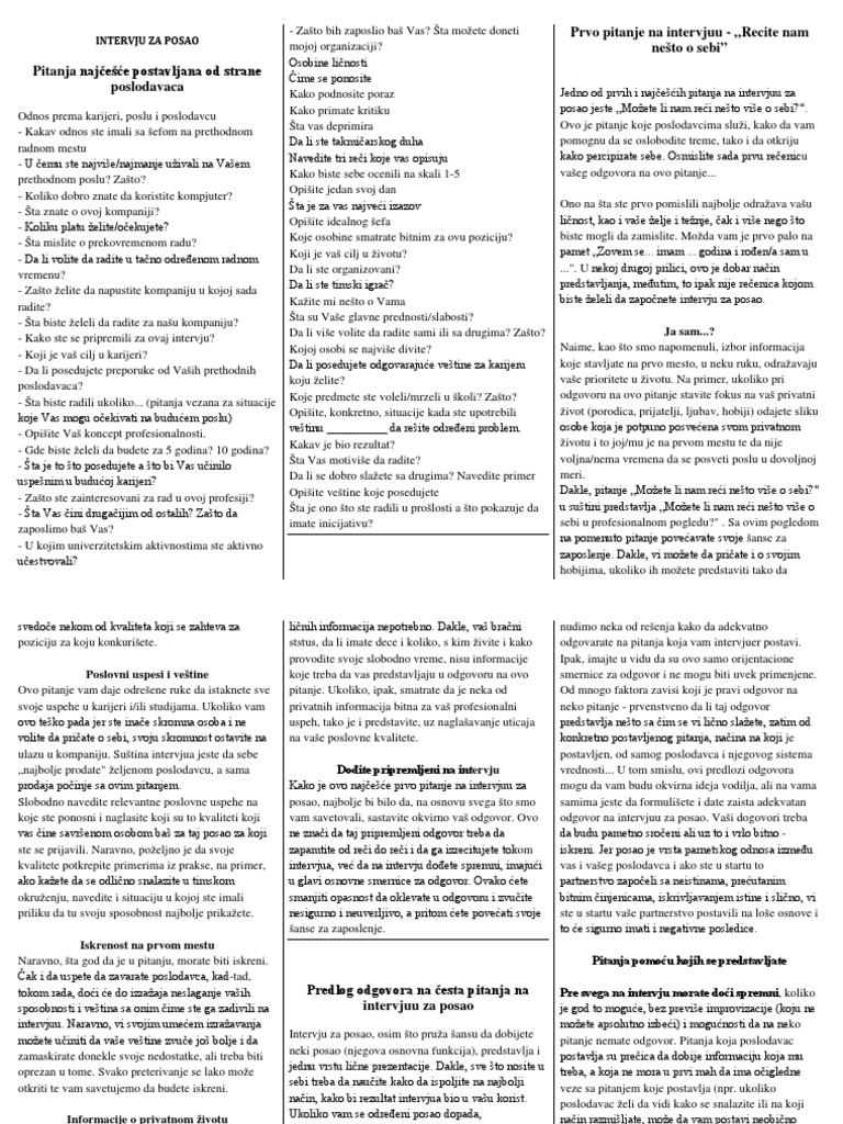 Predlog Odgovora Na Cesta Pitanja Na Intervjuu Za Posao Saveti