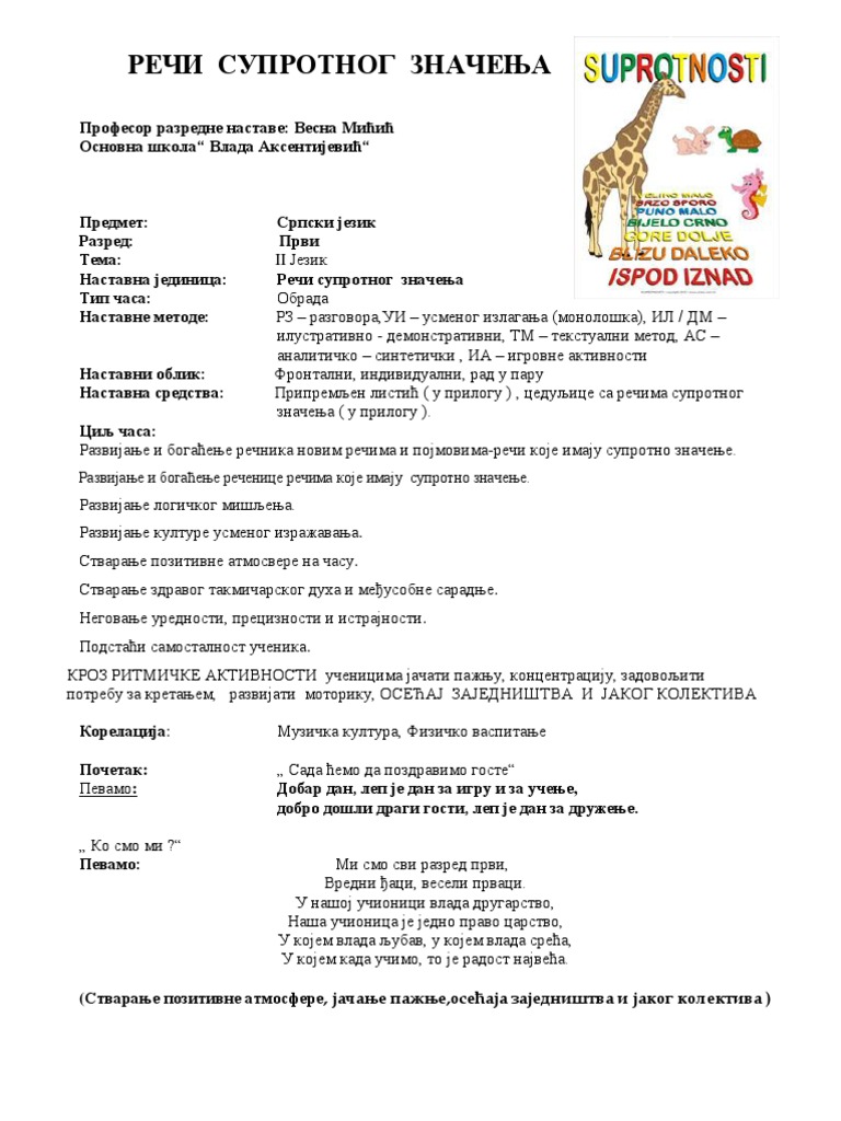 Prvi Rarzred Reci Suprotnog Znacenja