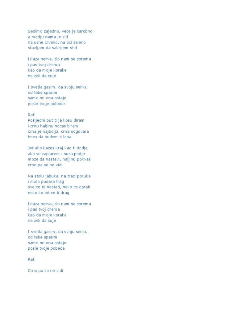 Crno Pa Se Ne Vidi Tekst Pesme Leontina