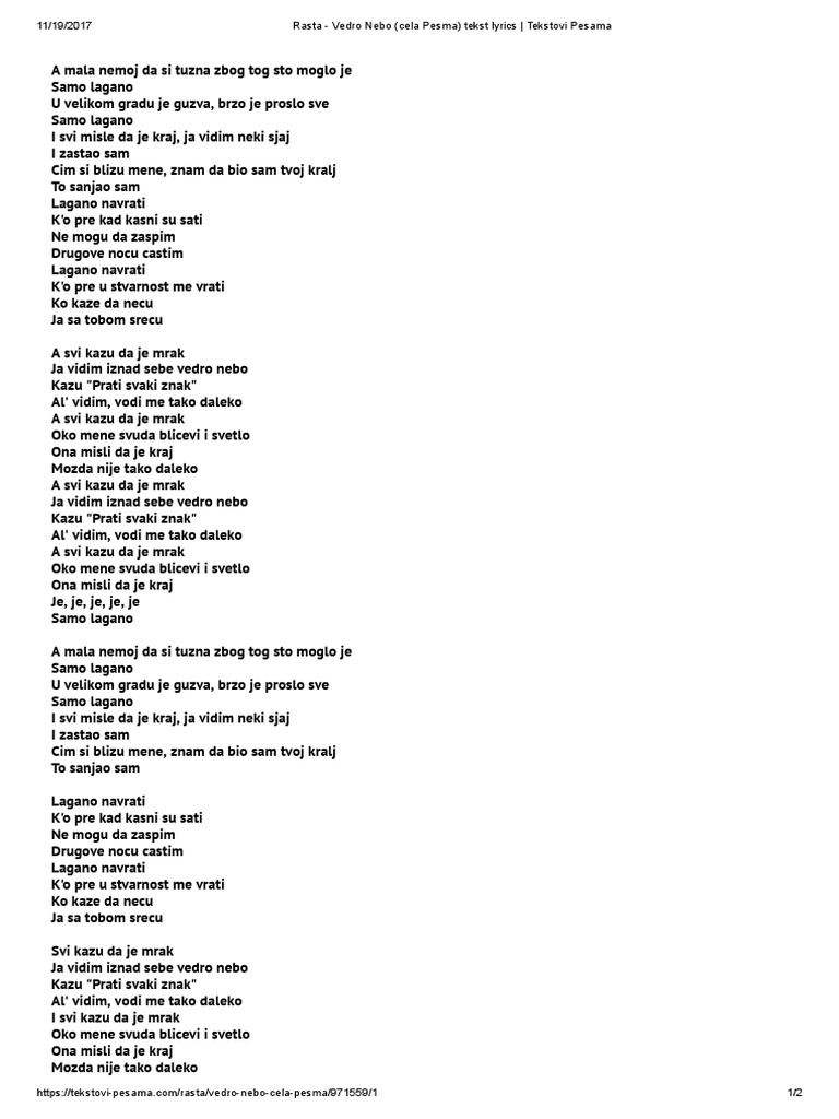 Neverne Bebe Tuzna Pesma Lyrics Tekst