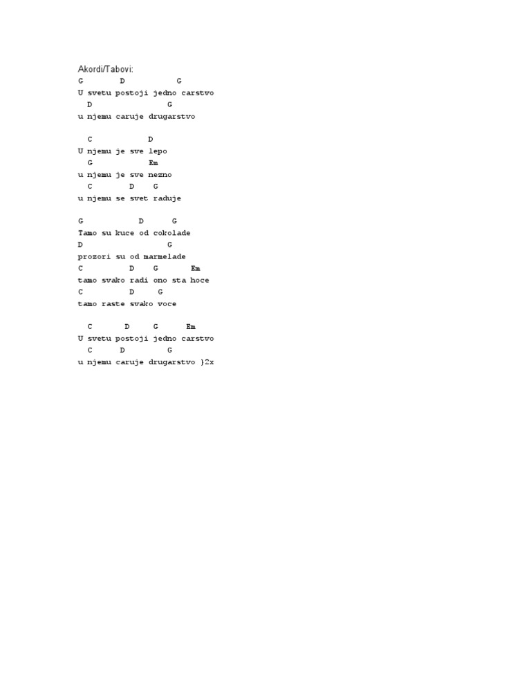 Akordi U Svetu Postoji Jedno Carstvo