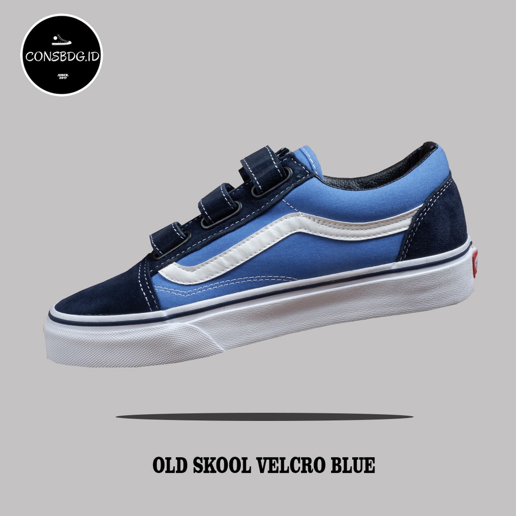 Sepatu Vans Old Skool Blue Navy Velcro Original Premium Import Fashion Pria Wanita Kasual Murah Shopee Indonesia