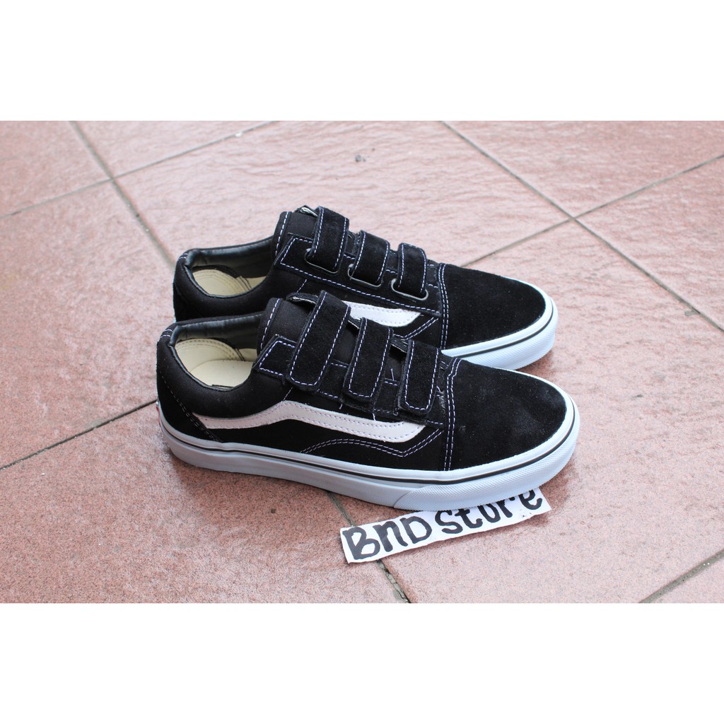 Vans Old Skool Classic Velcro Black White Bnib Shopee Indonesia