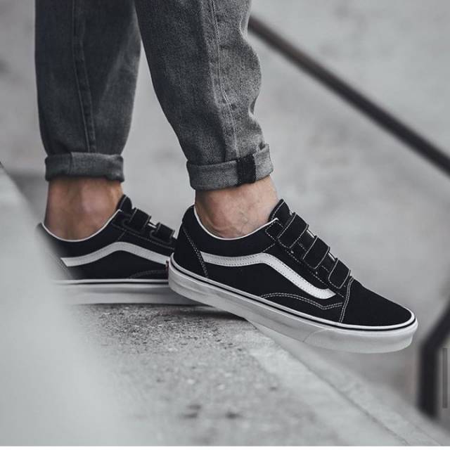 Vans Oldskool Velcro Black White Classic Lazada Indonesia