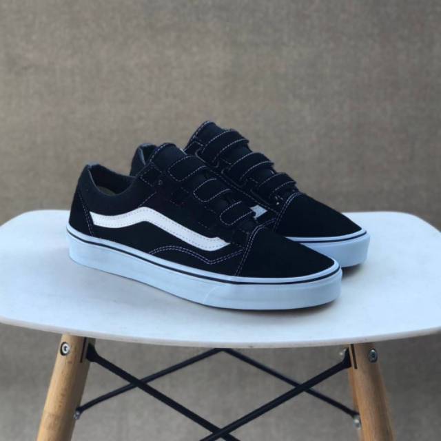 Vans Old Skool Classic Velcro Black True White Di Lapak Dg Store