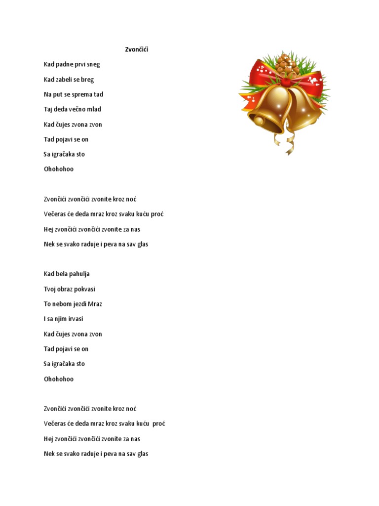 Zvoncici Zvoncici Tekst Pjesme Bozicne Pjesme Teen385 Com